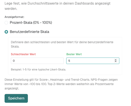 Wichtig: NPS ist nicht betroffen. NPS wird immer als Score von −100 bis +100 angezeigt.