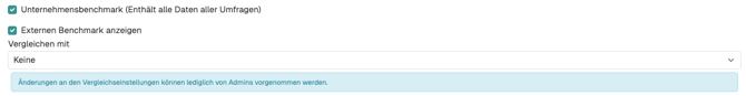 - Vergleichen mit: Daten die durch die Zugriffsrechte nicht freigeschaltet sind, können aber auf Attributsebene als Vergleichswert angezeigt werden. Auch bei eingeschränktem Zugriff (z. B. nur eine Unit) werden die Benchmarks dann entsprechend der eigenen Zuordnung berechnet.